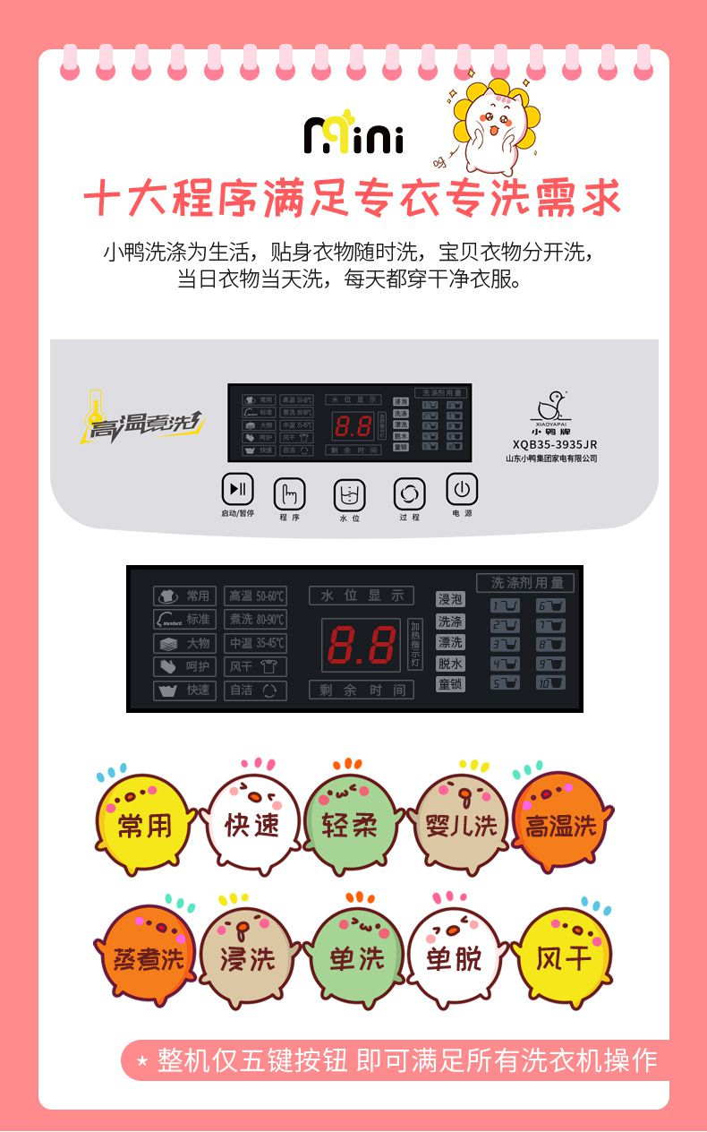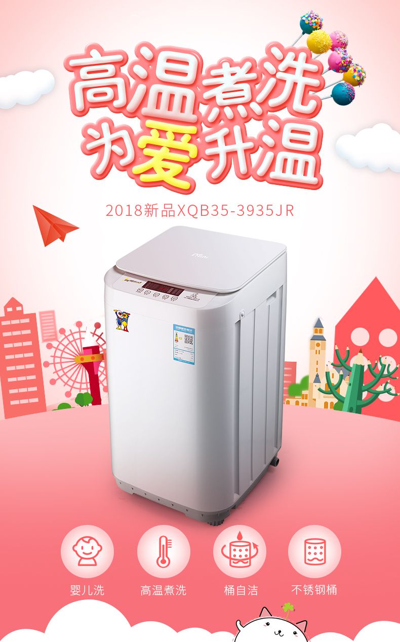 > 产品中心> 洗衣机专区> 3.5公斤迷你蒸煮型 全自动洗衣机 小型迷你婴儿童宝宝 XQB35-3635JR