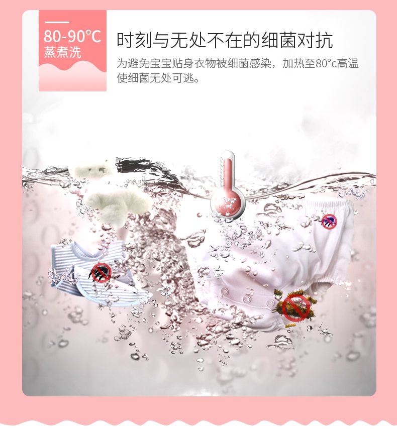 产品功能:高温蒸煮洗 童锁功能 钻石不锈钢内桶 多档水位可调