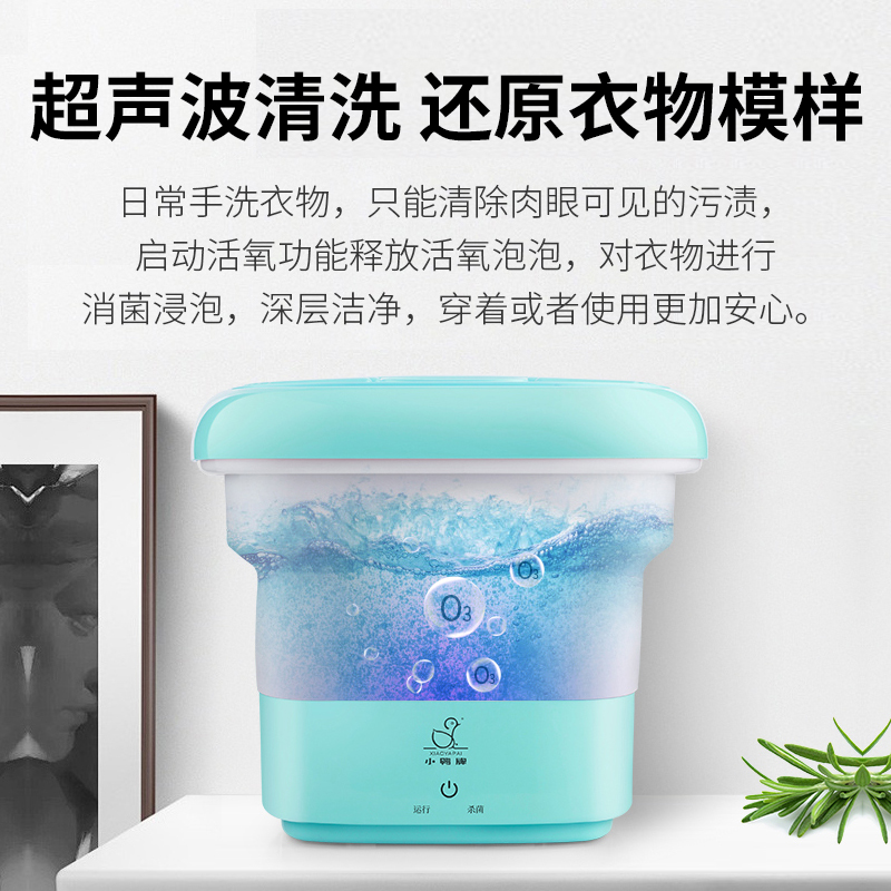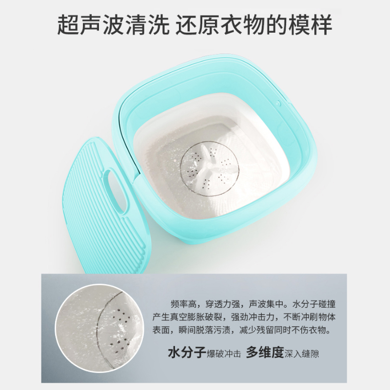 产品功能:迷你折叠洗衣机 超声波除渍 一机多能 活氧除菌