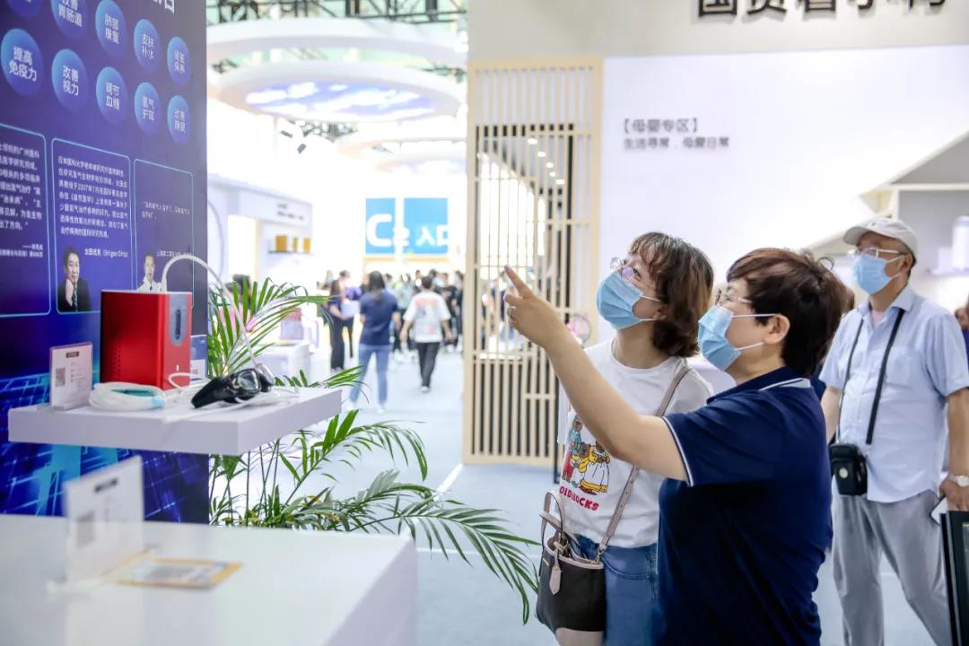 氢畅呼吸,悦享生活。康养展区前,顾客纷纷驻足,讲解员耐心讲解氢气机具有改善心血管功能、提升胃肠道功能、提升免疫力等功能。